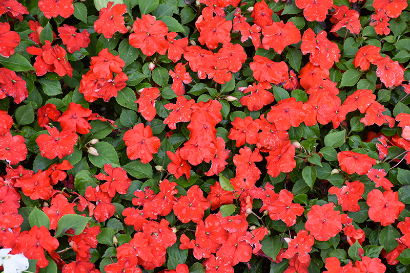 Beacon® Bright Red Impatiens is a dense herbaceous annual with a mounded form. Its medium texture blends into the garden, but can always be balanced by a couple of finer or coarser plants for an effective composition.