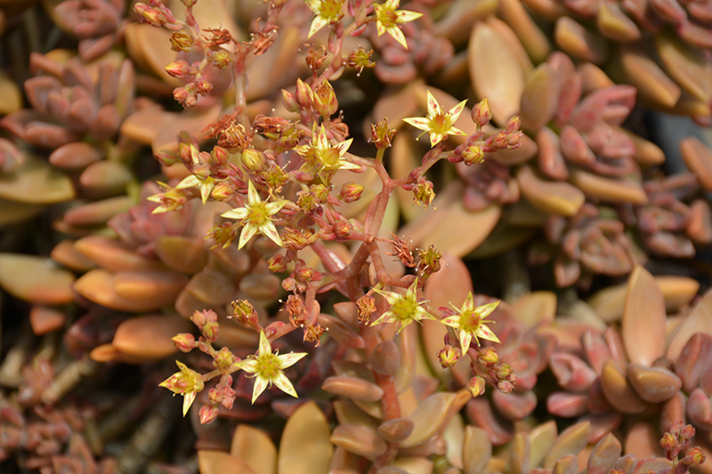 Vera Higgins Graptosedum has masses of beautiful clusters of yellow flowers at the ends of the stems from early spring to early summer, which emerge from distinctive coral-pink flower buds, and which are most effective when planted in groupings. Its attractive succulent pointy leaves remain brick red in color with showy coppery-bronze variegation and tinges of grayish green throughout the year.