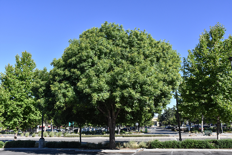 Chinese Pistache will grow to be about 35 feet tall at maturity, with a spread of 35 feet. It has a high canopy with a typical clearance of 6 feet from the ground, and should not be planted underneath power lines. As it matures, the lower branches of this tree can be strategically removed to create a high enough canopy to support unobstructed human traffic underneath. It grows at a medium rate, and under ideal conditions can be expected to live for 60 years or more.